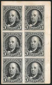 6. 1847 Issue Block of 16 of Ben Franklin (1847)